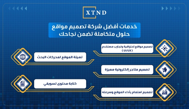 تمنحك خدمة تصميم موقع إلكتروني من خلال شركة Xtnd الفرصة لجذب المزيد من العملاء يوميًا؛ لأننا نعمل على تصميم مواقع وفقًا لمعايير لمحركات البحث SEO التي تضمن زيادة ظهور موقعك إلى من يبحثون عن خدماتك.